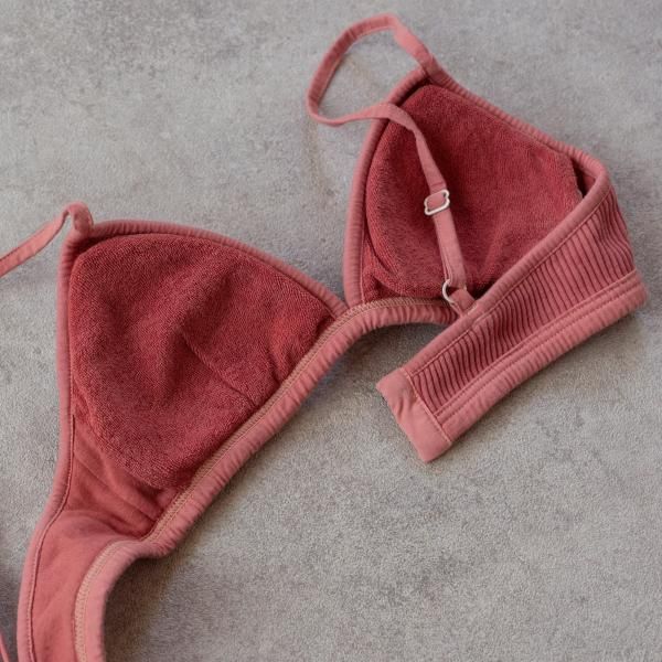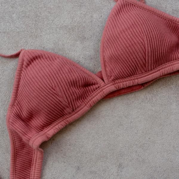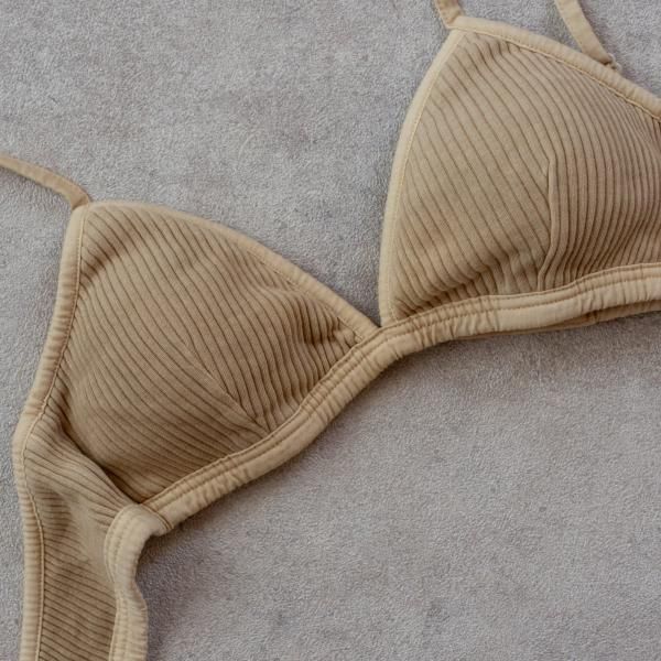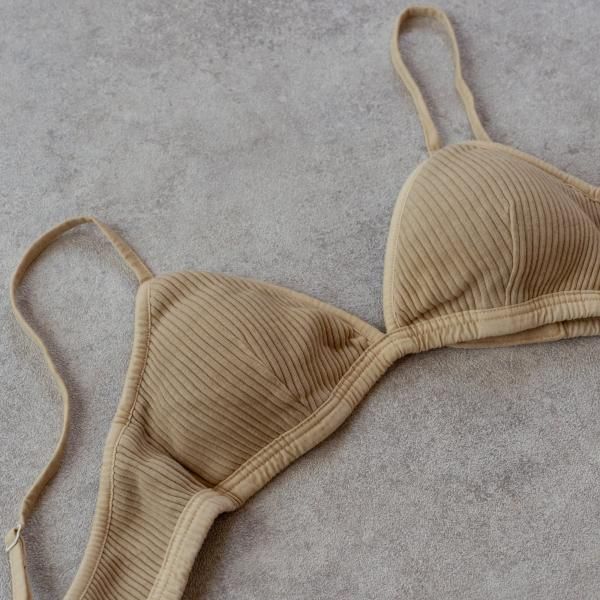 ・表地/裏地/カップ内側/パイピングなど部位ごとに求められる肌触り/伸縮性/強度に応じた100%オーガニックコットン生地を使い分けることで、極上の快適さを感じられる着心地とデイリーユースに求められる耐久性を両立しています。